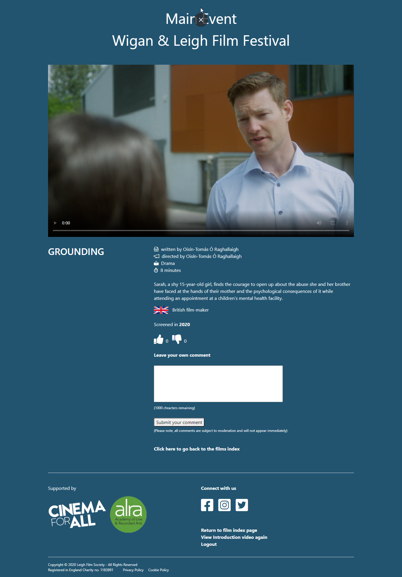 In 2020 we had to host our film festival virtually as a result of the Covid-19 Pandemic and the resulting UK wide lockdown during that year.
