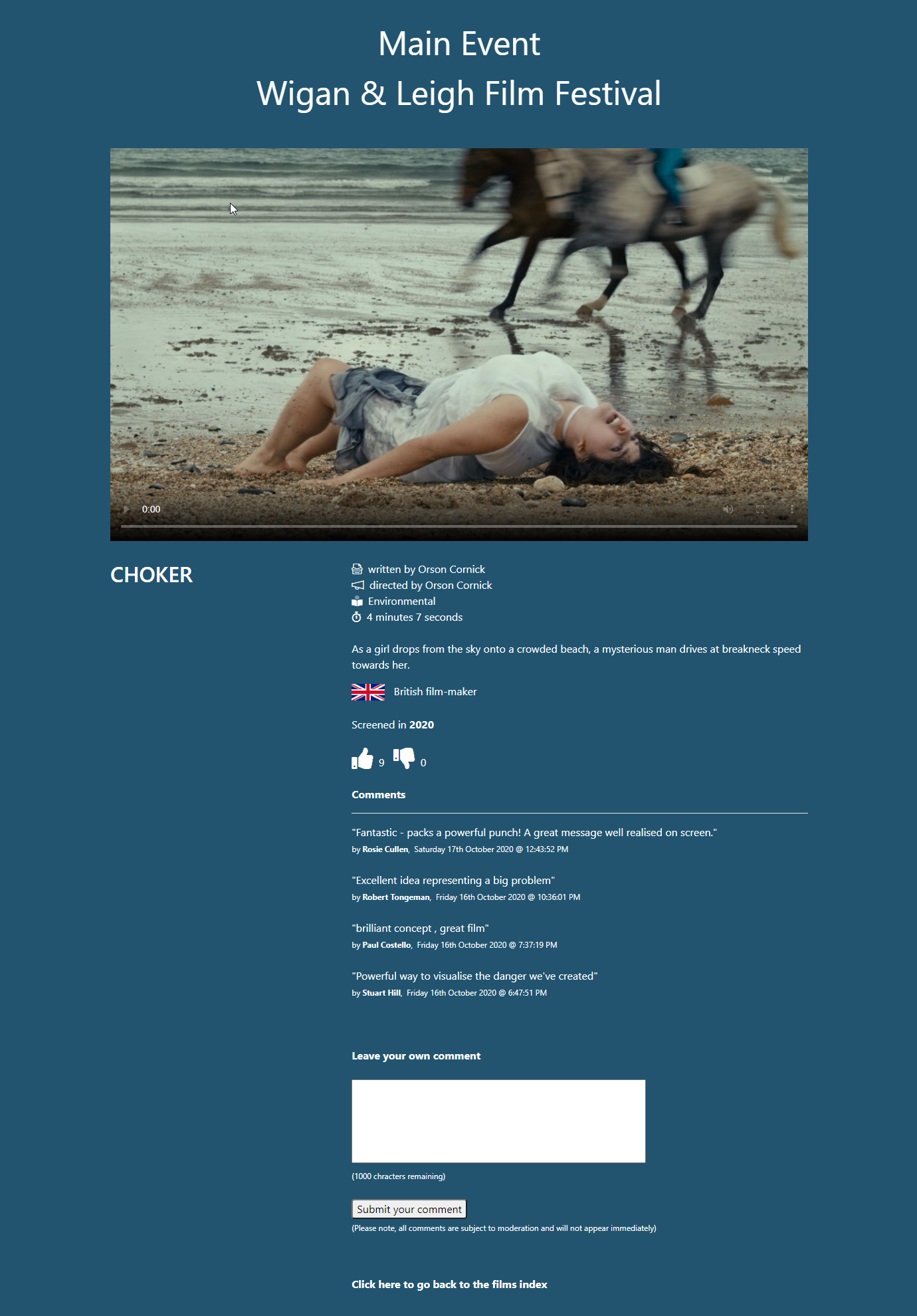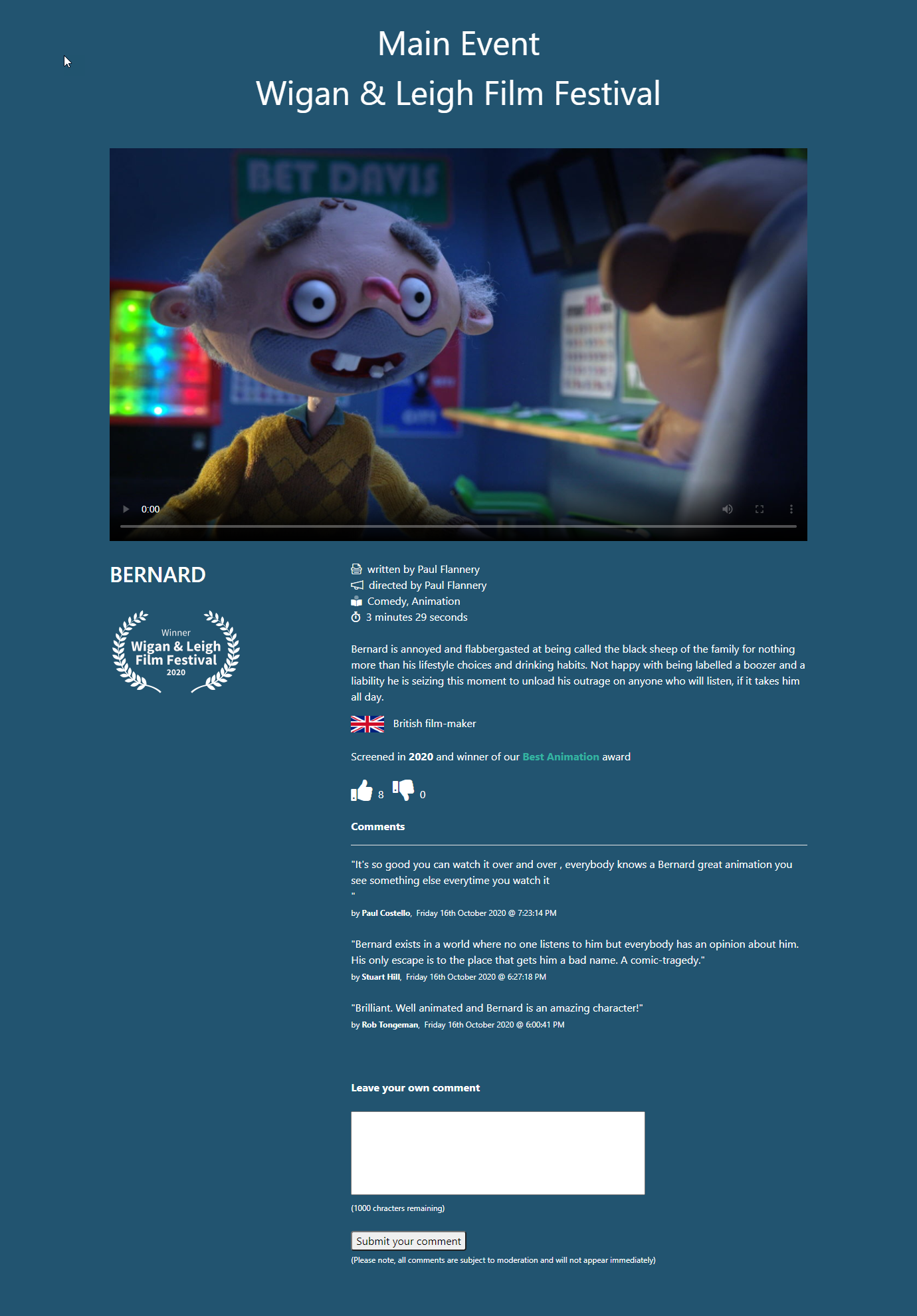 As you can see, alongside the film streaming itself, we had a thumbs up/down voting system for each film together with a section where viewers could post comments as well.